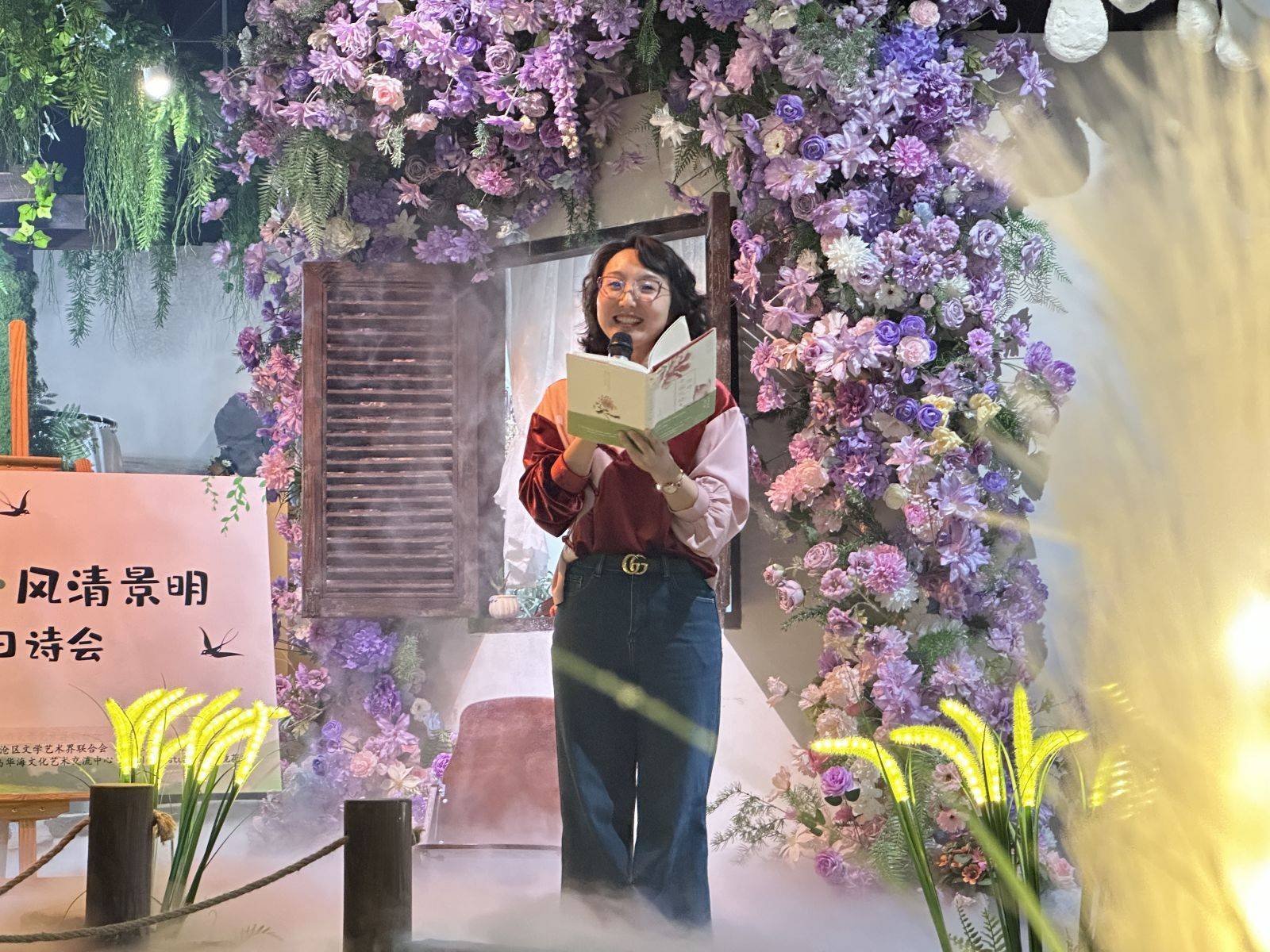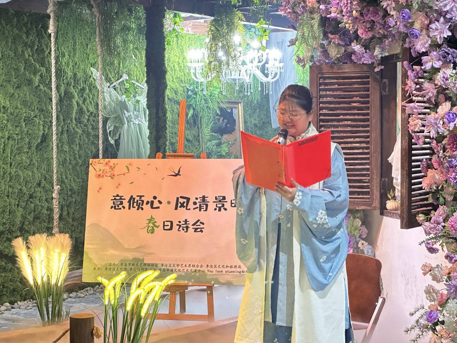 4月1日下午,由青岛市新文艺群体协会、李沧区文学艺术界联合会、李沧区文化和旅游局主办,李沧区文化馆、李沧区作家协会、青岛华海文化艺术交流中心承办的“意倾心·风清景明”—春日诗会,在You look stunning秘境花园如期举行,此次诗会以“新大众”为主体,邀请本地诗人、作家以及朗诵爱好者们齐聚一堂,以诗为媒,以声传情,共同开启了一场别开生面的春日文艺之旅。