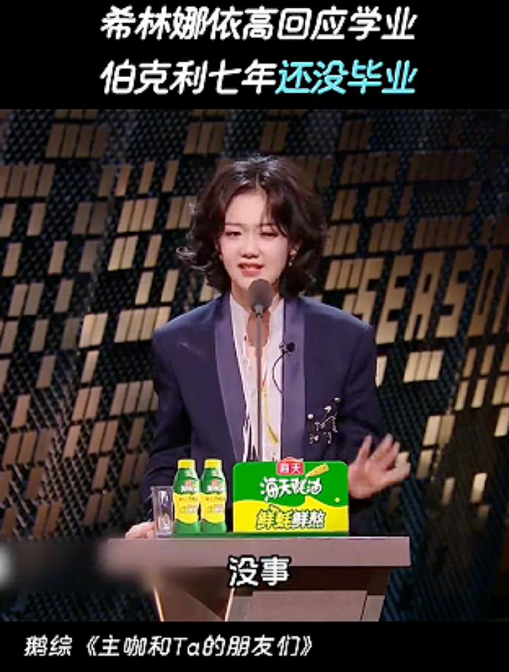 近日“主咖和他的朋友们”“希林娜依高” 、“七年”、“伯克利”、“毕业”相关调侃引围观。她本人在综艺里正面回应,属于主动延期毕业,学籍一直正常保留,还在兼顾网课修学分,更自爆趣味梗:自嘲连登四年春晚怕被“春晚毕业”,反倒被妈妈调侃“伯克利七年还没毕业”,面对镀金质疑,还玩谐音梗“ Just 镀 it ”幽默又通透。